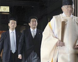 人民網(wǎng)北京12月26日電 (鄭青亭)日本首相安倍晉三于當(dāng)?shù)貢r(shí)間26日11時(shí)30分(北京時(shí)間10時(shí)30分)參拜供奉有二戰(zhàn)甲級(jí)戰(zhàn)犯的靖國(guó)神社。這是繼2006年時(shí)任日本首相小泉純一郎參拜以來(lái),首位現(xiàn)職首相參拜靖國(guó)神社。 安倍此次參拜正值其上任一周年之際。對(duì)于這一時(shí)機(jī)的選擇,中國(guó)社科院日本問(wèn)題![詳細(xì)]