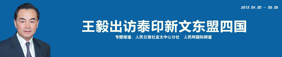 應(yīng)泰國(guó)副總理兼外交部長(zhǎng)素拉蓬、印度尼西亞外交部長(zhǎng)馬爾迪、新加坡外交部長(zhǎng)尚穆根和文萊外交與貿(mào)易部長(zhǎng)穆罕默德親王邀請(qǐng),外交部長(zhǎng)王毅于2013年4月30日至5月5日對(duì)上述四國(guó)進(jìn)行正式訪問(wèn)。