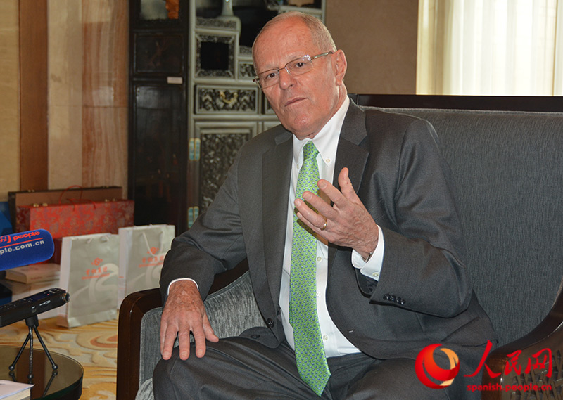 專訪秘魯總統(tǒng)庫琴斯基:秘魯將申請加入亞投行 點(diǎn)擊進(jìn)入西班牙語鏈接>>> 秘魯總統(tǒng)佩德羅·巴勃羅·庫琴斯基接受人民網(wǎng)記者專訪。 劉旭霞攝 人民網(wǎng)北京9月20日電 (亞瑟夫 劉旭霞)今年是秘魯和新中國建交45周年,應(yīng)中國國家主席習(xí)近平邀請,秘魯共和國總統(tǒng)佩德羅·巴勃羅·庫琴斯基于9月12日至16日對中國進(jìn)行了國事訪問。