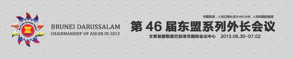 - 2013年6月30日至7月2日,第46屆東盟外長會議、第14屆東盟與中日韓(10+3)外長會議、東盟與對話伙伴國外長會、第20屆東盟地區(qū)論壇及第3屆東亞峰會外長會等一系列會議在文萊都斯里巴加灣市國際會議中心舉行,共有29個國家派出外長或副外長與會。