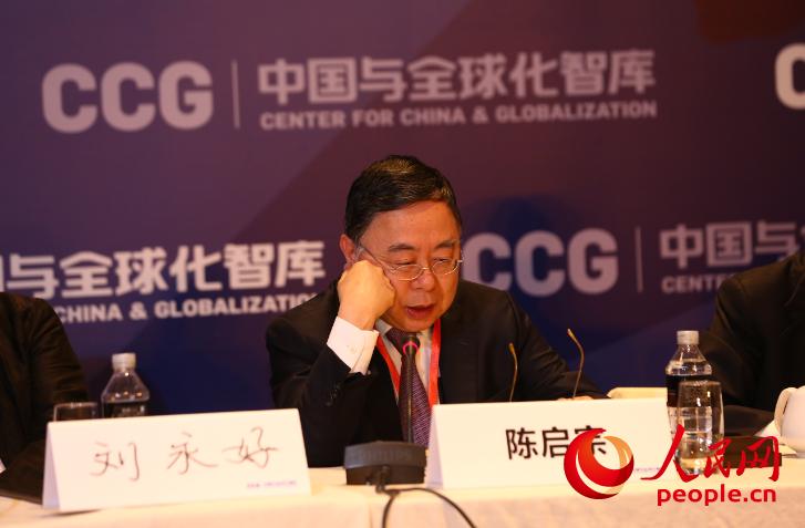 人民網(wǎng)北京5月15日電 由中國(guó)與全球化智庫(kù)(CCG)主辦的第二屆中國(guó)與全球化圓桌論壇于2016年5月15日在北京舉行。CCG聯(lián)席主席、香港恒隆地產(chǎn)董事長(zhǎng)、亞洲協(xié)會(huì)聯(lián)席主席陳啟宗在發(fā)言中指出,中國(guó)的全球化是不可逆轉(zhuǎn)的,13億人口的意志是不能被抹殺的。外面的環(huán)境再惡劣,中國(guó)人還是要往外走。雖然全球化遇到…[詳細(xì)]