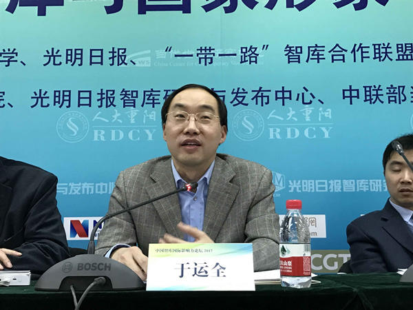 人民網(wǎng)北京1月9日電 (徐祥麗)由中國人民大學(xué)、光明日報(bào)、“一帶一路”智庫合作聯(lián)盟主辦的“中國智庫國際影響力論壇2017”今日在京開幕。中國人民大學(xué)校長劉偉在開幕式致辭中表示,“上兵伐謀,其次伐交”。智庫外交的新軍突起已經(jīng)成為中國全球治理理念的特色載體,中國方案走向世界的明星使者。2016年,智庫在…[詳細(xì)]