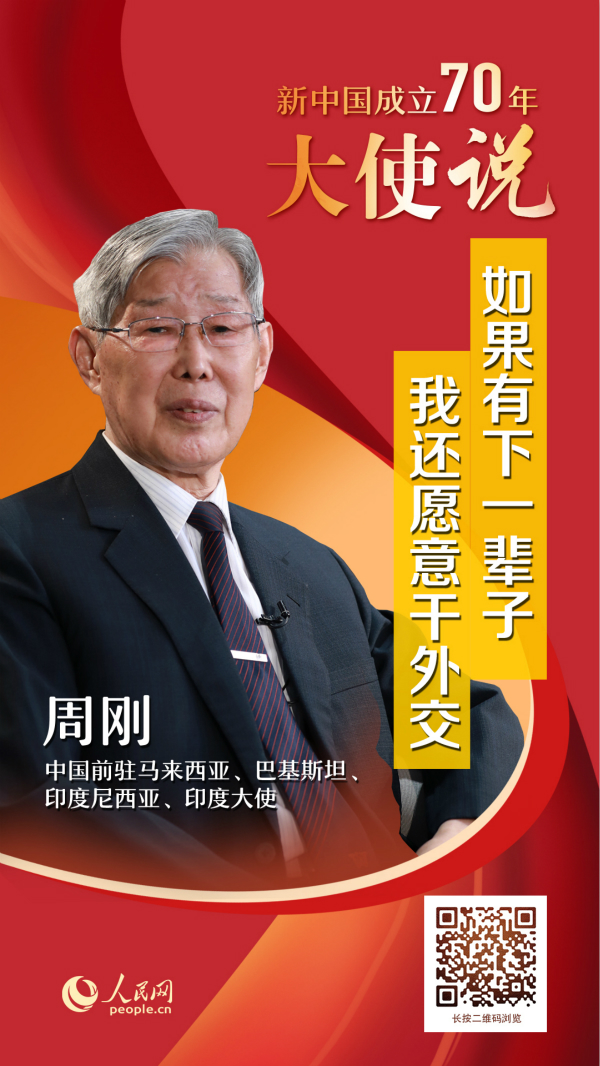 從1962年進入外交部到2001年卸任中國駐印度大使,在40年的外交生涯中,周剛曾出任中國駐馬來西亞、巴基斯坦、印度尼西亞、印度大使,將自己的青春和心血全部奉獻給了新中國的外交事業(yè)。在新中國成立70周年之際,周剛向人民網(wǎng)講述了他酸甜苦辣的外交人生。