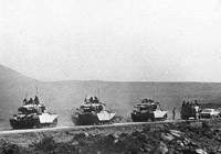 1967年6月5日早晨7時(shí)45分,以色列出動了幾乎全部空軍,對埃及、敘利亞和伊拉克的一切機(jī)場進(jìn)行了閃電式的襲擊?找u半小時(shí)后,以色列地面部隊(duì)也發(fā)動了進(jìn)攻。 |