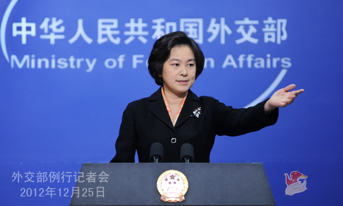 人民網(wǎng)北京12月26日電  (記者  羅旭)26日,外交部發(fā)言人華春瑩主持例行記者會(huì),就埃及新憲法、安倍晉三當(dāng)選首相等問題回答記者提問。