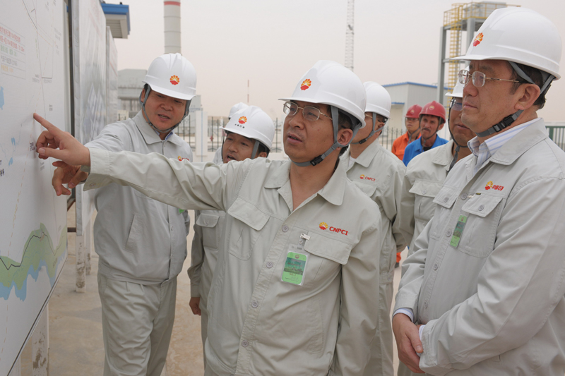 2011年10月2日,肖清華大使(右二)在中國(guó)石油土庫(kù)曼斯坦阿姆河天然氣項(xiàng)目建設(shè)現(xiàn)場(chǎng)調(diào)研工作,了解項(xiàng)目進(jìn)展。