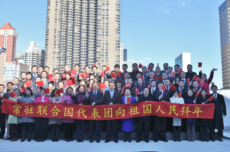 值此新春佳節(jié)來臨之際,我謹(jǐn)代表中國常駐聯(lián)合國代表團(tuán)全體同志向祖國人民拜年,祝大家身體健康,吉祥如意!