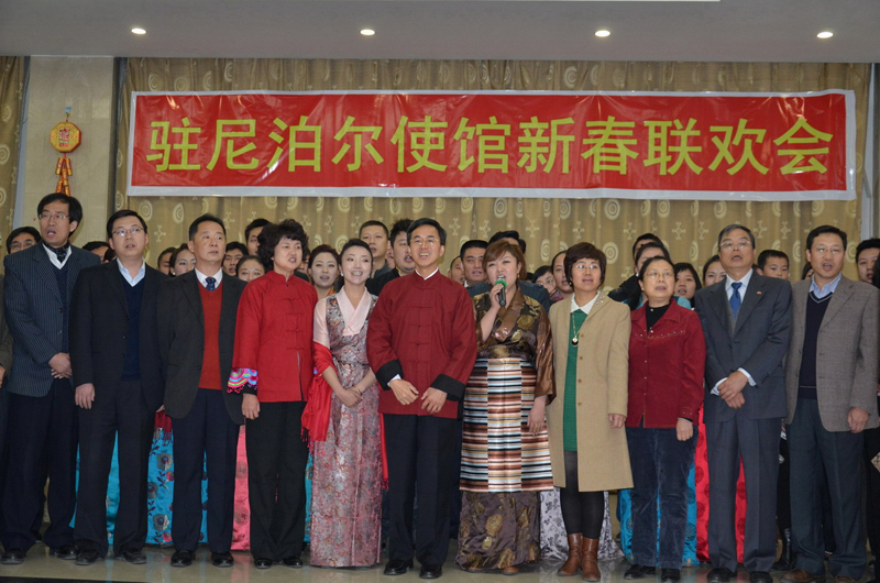 銀龍涌動送冬去,金蛇狂舞迎春來。值此新春佳節(jié)之際,中國駐尼泊爾大使楊厚蘭和使館全體工作人員以及駐尼泊爾的中資機(jī)構(gòu)代表、華人華僑代表,向全國人民拜年,祝全國人民在新的一年里幸福安康,工作順利!祝偉大祖國永遠(yuǎn)繁榮昌盛!