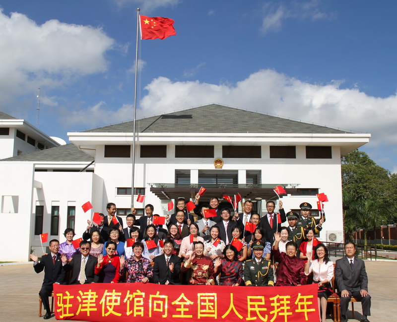 過去的一年,中津傳統(tǒng)友誼不斷鞏固,政治互信進(jìn)一步增強,經(jīng)貿(mào)務(wù)實合作全面開花,人文交流蓬勃發(fā)展。2013年,駐津使館全體工作人員將深入貫徹黨的十八大精神,繼續(xù)踐行外交人員核心價值觀,堅持“以人為本、外交為民”,努力開創(chuàng)中津關(guān)系新局面,為祖國外交事業(yè)再做新貢獻(xiàn)。