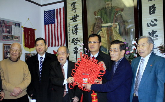 駐芝加哥總領事趙衛(wèi)平給當?shù)貎S社拜年