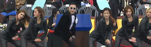 PSY助陣樸槿惠就職現(xiàn)場(圖片來自韓國媒體視頻截圖)