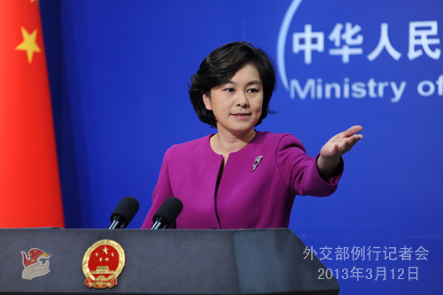 2013年3月11日,外交部發(fā)言人華春瑩主持例行記者會。