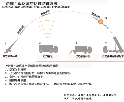 美國“薩德”戰(zhàn)區(qū)高空區(qū)域防御系統(tǒng)作戰(zhàn)示意圖