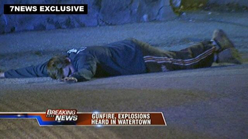 一名嫌犯當(dāng)時(shí)趴倒在地,未做任何反抗。圖片來源:波士頓當(dāng)?shù)仉娨暸_(tái)