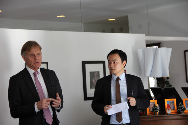 照片說明: 丹麥大使裴德盛先生宣布啟用使館官方微信。 (攝影:人民網(wǎng)黃瑾)