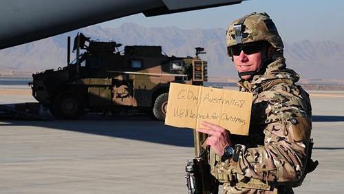 撤離阿富汗,回國(guó)與親人共度圣誕節(jié),這是駐阿澳軍、他們的家庭,以及澳大利亞人民多年的企盼。在這一刻到來(lái)的時(shí)候,他們異常興奮。一名駐阿澳軍在登上返程的軍機(jī)前,高興地舉著一塊紙牌,上面寫(xiě)著:“你好,澳大利亞!我們將回去過(guò)圣誕節(jié)!
