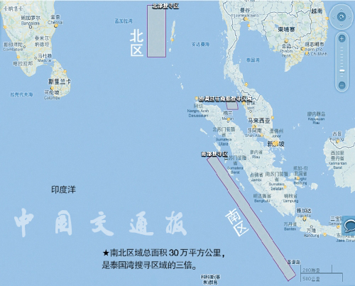 據(jù)介紹,根據(jù)后續(xù)方案,中方船艦將在孟加拉灣、巽他海峽建立南北兩個(gè)搜尋區(qū)。南部搜尋區(qū)面積約18萬平方公里,由“海巡01”、“南海救101”、海軍“998”艦、“171”艦、“886”艦組成南下編隊(duì),經(jīng)巽他海峽進(jìn)入印度洋制定區(qū)域搜尋。