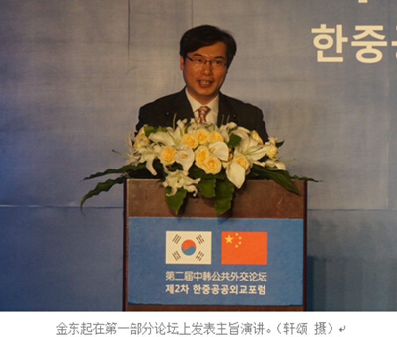 在第一部分論壇中,金東起發(fā)表了主旨演講。他在演講中闡述了自己對公共外交的理解,表達了對韓中兩國公共外交合作前景的期待。他認為,公共外交并不是一方對另一方的單向宣傳,韓中兩國如果可以本著加強溝通、互利共贏的理念開展合作,那么兩國的公共外交合作將充分惠及兩國。他強調(diào),如果雙方找到共同秉持的價值觀和共同追求的目標,合作必將取得成功。他相信,隨著韓中關系不斷深化,交流合作日益擴大,韓中公共外交領域的合作將會取得更大的成果。