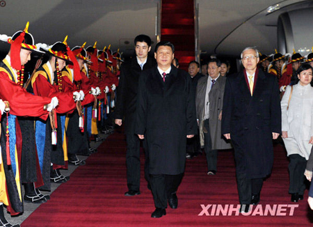 12月16日,中國國家副主席習(xí)近平抵達首爾,開始對韓國進行正式訪問,韓國政府高級官員到機場迎接。新華社記者 馬占成 攝