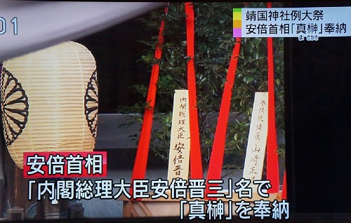 人民網(wǎng)10月17日電 10月17日至20日是日本靖國(guó)神社的秋季例行大祭活動(dòng)。目前正在意大利訪問(wèn)的日本首相安倍晉三已經(jīng)以“內(nèi)閣總理大臣 安倍晉三”的名義奉上“真榊”祭品。當(dāng)天早晨,日本100多名“大家都來(lái)參拜靖國(guó)神社國(guó)會(huì)議員之會(huì)”會(huì)員參拜了靖國(guó)神社。