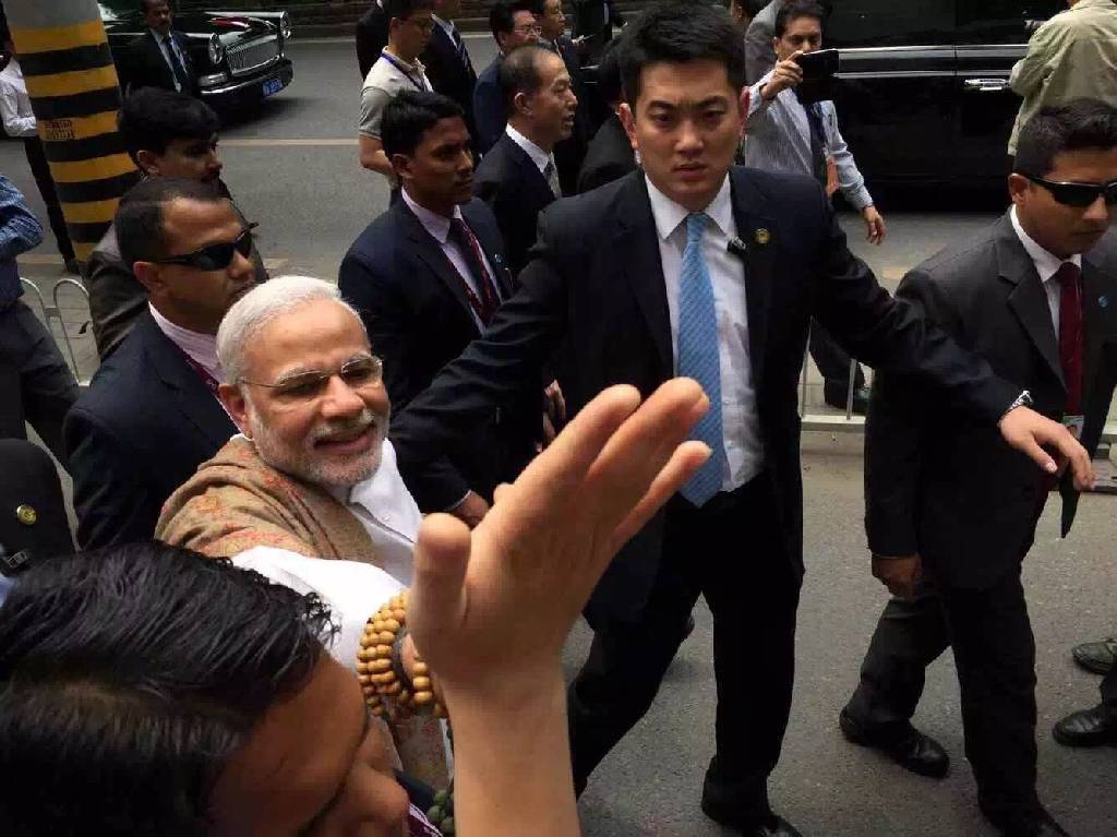 莫迪一行離開大興善寺時(shí),看到熱情的西安市民,他特意讓司機(jī)停車,他下車后向熱情的西安市民招手致意。這一幕令不少西安市民回味不已。