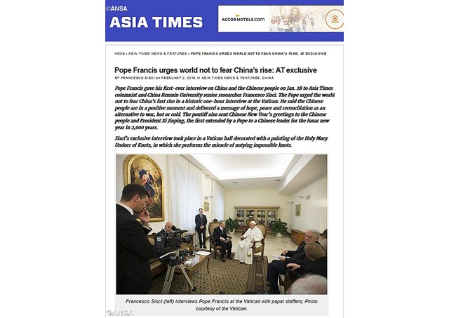教皇方濟(jì)各接受《亞洲時報》采訪