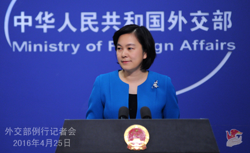 人民網(wǎng)北京4月25日電 據(jù)外交部網(wǎng)站消息,2016年4月25日,外交部發(fā)言人華春瑩主持例行記者會(huì)。