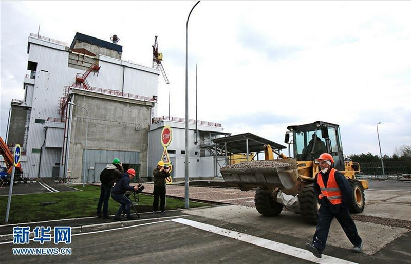 在烏克蘭北部切爾諾貝利核電站內(nèi),人們參觀即將完工的核廢料處理廠。