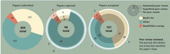 其實(shí),2013年一場(chǎng)“釣魚(yú)論文”事件就曾經(jīng)引起熱議:美國(guó)生物學(xué)家約翰·博安農(nóng)炮制了一篇“只要有高中化學(xué)基礎(chǔ)的人都能看出其中錯(cuò)誤”的論文,投給304家開(kāi)放存取的期刊,幾個(gè)月后,有157家OA期刊通過(guò)了該論文,表示只要支付版面費(fèi)就可以發(fā)表。這些“中槍”的期刊中,有60%完全沒(méi)對(duì)該論文進(jìn)行同行評(píng)審,其中不乏一些來(lái)自美國(guó)和印度的大牌出版社。
