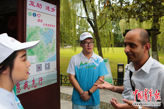 為更好地服務(wù)G20峰會,西湖風景名勝區(qū)特別招募了一批外語好、綜合素質(zhì)強的青年志愿者。33歲的李曉楓大學畢業(yè)后留在了杭州,現(xiàn)在每到放假,她都會去做志愿者。通過志愿服務(wù),她越來越了解杭州,也愛上了這座城市。“我要把知道的杭州故事告訴更多的游客。”李曉楓說,G20腳步越來越近,她愿意用自己最真誠的微笑與服務(wù)迎接中外賓客,讓更多人了解杭州,讓志愿者成為杭州最好的名片。