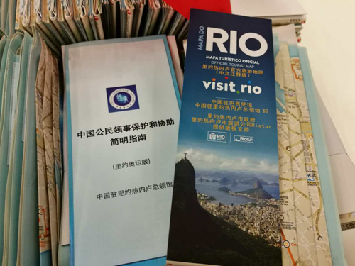 祝青橋介紹,我駐巴西使館和總領(lǐng)館印制了中國(guó)公民領(lǐng)事保護(hù)和協(xié)助簡(jiǎn)明指南(里約奧運(yùn)版)》、《里約熱內(nèi)盧官方旅游地圖(中文注釋版)》,《公民自我保護(hù)手冊(cè)》等宣傳教育材料。奧運(yùn)會(huì)期間,駐里約總領(lǐng)館將在國(guó)際機(jī)場(chǎng)、酒店、奧運(yùn)場(chǎng)館聚集區(qū)等場(chǎng)所發(fā)放有關(guān)中文材料。
