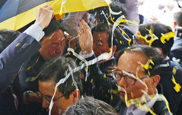 7月15日,韓國總理黃教安前往韓國慶尚北道星州郡,試圖安撫當(dāng)?shù)孛癖妼?duì)“薩德”的不滿。但是,當(dāng)?shù)乜棺h民眾向他投擲雞蛋和水瓶以示憤怒。