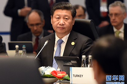 2015年11月15日,二十國集團領導人第十次峰會在土耳其安塔利亞舉行。國家主席習近平出席并發(fā)表題為《創(chuàng)新增長路徑共享發(fā)展成果》的重要講話。這是習近平出席第一階段會議。新華社記者李學仁攝