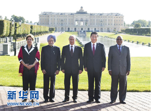 2013年9月5日,金磚國(guó)家領(lǐng)導(dǎo)人非正式會(huì)晤在俄羅斯圣彼得堡舉行,國(guó)家主席習(xí)近平出席,同巴西總統(tǒng)羅塞夫、俄羅斯總統(tǒng)普京、印度總理辛格、南非總統(tǒng)祖馬就金磚國(guó)家合作以及重大國(guó)際和地區(qū)問(wèn)題交換意見(jiàn)、協(xié)調(diào)立場(chǎng)。習(xí)近平強(qiáng)調(diào),面對(duì)各種風(fēng)險(xiǎn)和挑戰(zhàn),金磚國(guó)家要凝聚在重大問(wèn)題上的共識(shí),加強(qiáng)團(tuán)結(jié)合作。