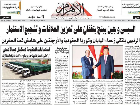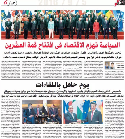 埃及《金字塔報》頭版報道G20峰會及中埃元首會面