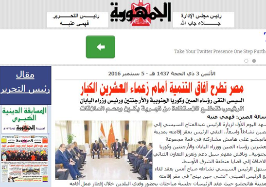 埃及《共和國報》關(guān)注塞西總統(tǒng)與習(xí)近平主席的會晤