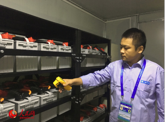 肖生杰拿著測溫槍在對央視衛(wèi)星轉(zhuǎn)播車應(yīng)急電源檢查