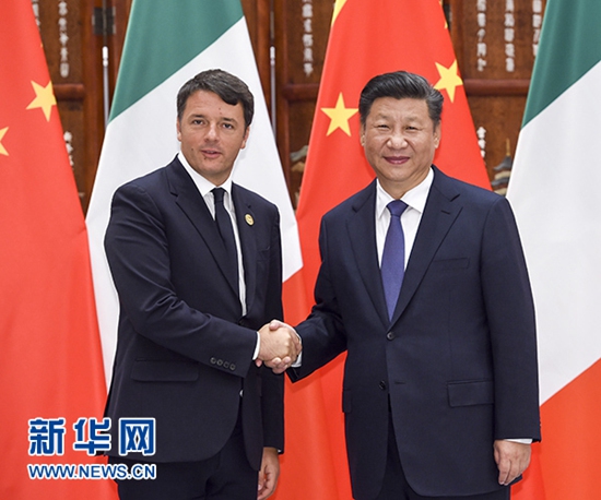 9月3日,習(xí)近平主席會見意大利總理倫齊。倫齊表示,意中兩大古老文明的友誼源遠(yuǎn)流長。意方對兩國關(guān)系日益緊密感到高興,希望深化同中方經(jīng)貿(mào)、金融、港口建設(shè)、文化、醫(yī)療等領(lǐng)域合作,愿參加“一帶一路”建設(shè)。