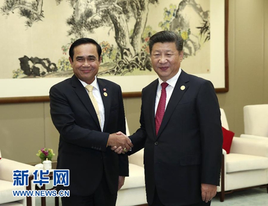 9月4日,習近平主席會見泰國總理巴育。巴育表示,感謝中方邀請?zhí)﹪鱿畤瘓F領導人杭州峰會,廣大發(fā)展中國家高度贊賞中方推動加強二十國集團同七十七國集團的合作。泰中一家親,泰方致力于深化兩國人民傳統(tǒng)友誼,擴大兩國經(jīng)貿(mào)、旅游、基礎設施等各領域合作。