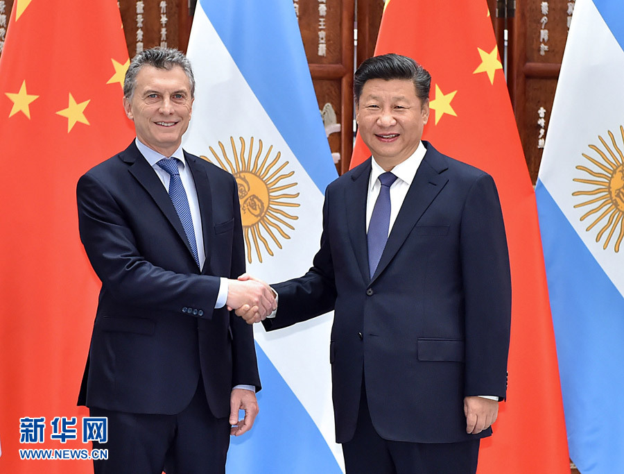 9月3日,國家主席習(xí)近平在杭州會見前來出席二十國集團領(lǐng)導(dǎo)人杭州峰會的阿根廷總統(tǒng)馬克里。 新華社記者 李濤 攝