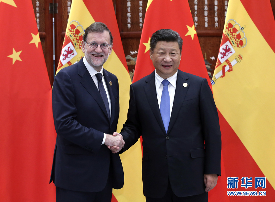 9月5日,國家主席習(xí)近平在杭州會見西班牙首相拉霍伊。新華社記者龐興雷攝