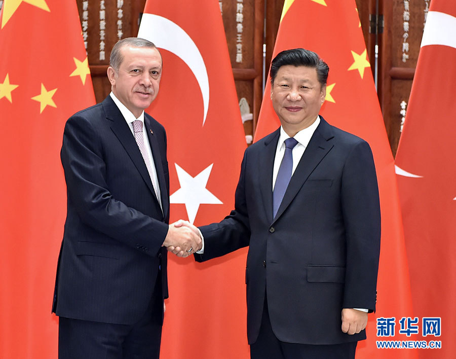 9月3日,國家主席習(xí)近平在杭州會見來華出席二十國集團領(lǐng)導(dǎo)人杭州峰會的土耳其總統(tǒng)埃爾多安。 新華社記者 李濤 攝