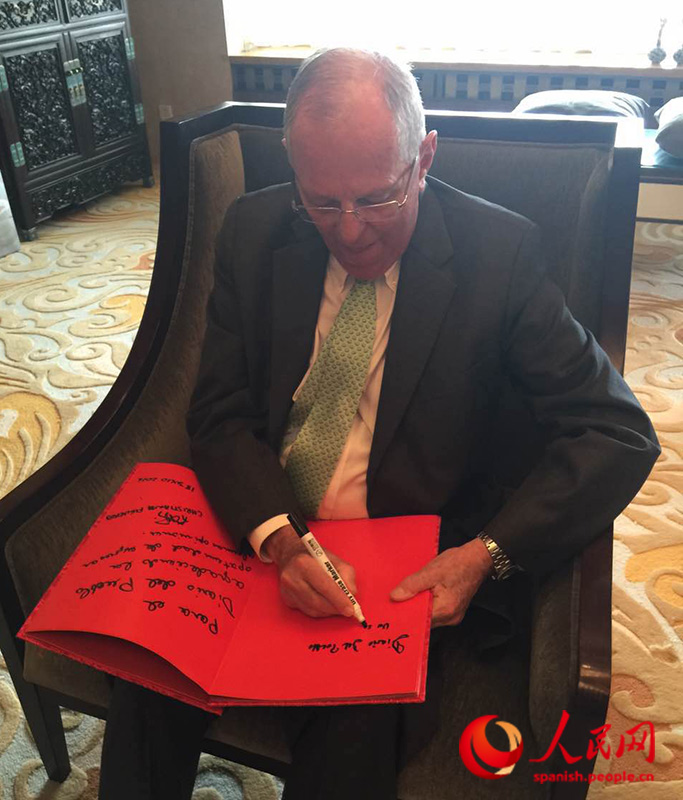 秘魯總統(tǒng)佩德羅·巴勃羅·庫(kù)琴斯基為人民網(wǎng)題詞。 劉旭霞攝