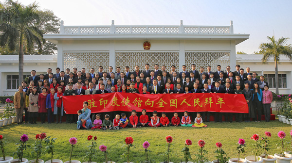值此農(nóng)歷雞年到來之際,我和中國(guó)駐印度使館全體外交官馨香禱祝,祈愿?jìng)ゴ笞鎳?guó)國(guó)富民強(qiáng)、國(guó)泰民安!