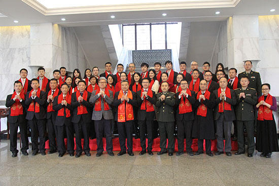 中國駐朝鮮大使李進(jìn)軍(第一排左起第七位)率使館全體人員拜年