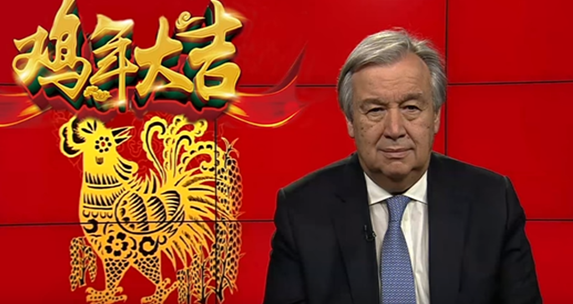 人民網(wǎng)聯(lián)合國1月28日電(記者 殷淼)值此中國農(nóng)歷新年來臨之際,聯(lián)合國秘書長古鐵雷斯通過視頻發(fā)表新春賀詞,向中國人民及全球華人祝賀雞年春節(jié)。