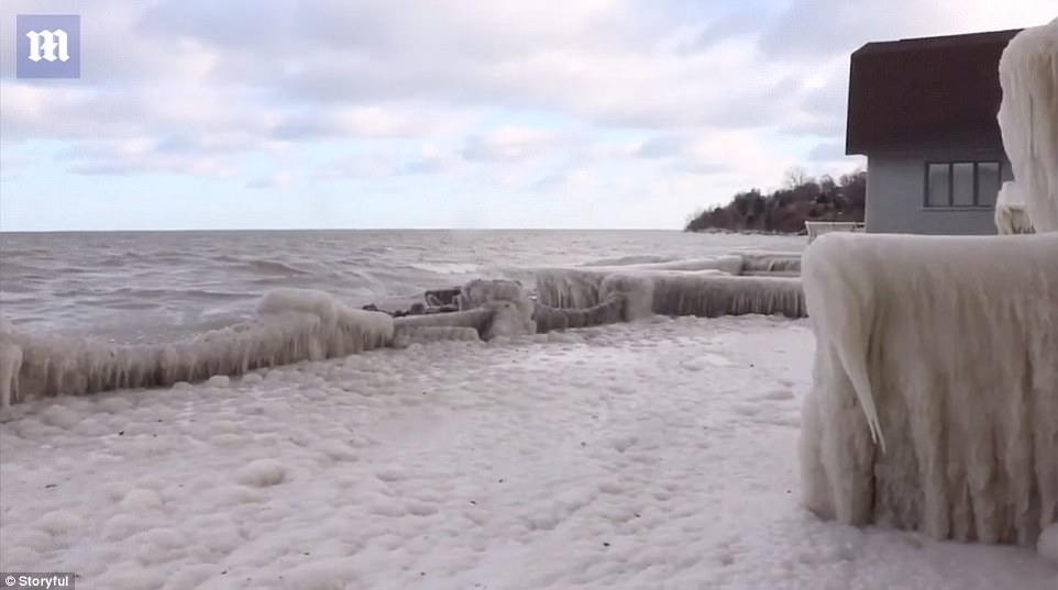 極易滑倒:攝影師家的后門廊全是冰,非常容易滑倒。Kucko說(shuō)有一些人不相信照片是真的,要不說(shuō)他用Photoshop編輯了照片,要不說(shuō)他在房子外面蓋了一層泡沫。