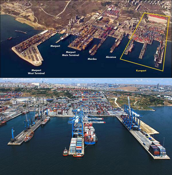 土耳其是絲綢之路經(jīng)濟帶和21世紀海上絲綢之路沿線的重要節(jié)點,Kumport碼頭位于馬爾馬拉海西北海岸的Ambarli港區(qū)內(nèi),靠近伊斯坦布爾的歐洲部分,占據(jù)歐亞大陸連接處的重要戰(zhàn)略地理位置,距離黑海航線必經(jīng)的博斯普魯斯海峽僅35公里,是黑海和地中海之間的咽喉要地,是土耳其第三大集裝箱碼頭。