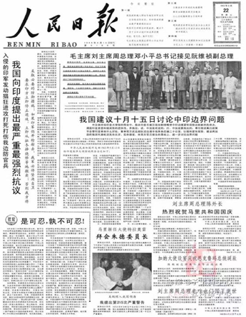 1962年9月22日《人民日報》發(fā)表了題為《是可忍,孰不可忍!》的社論告誡印度,中國人民不能容忍印度軍隊的挑釁罪行。