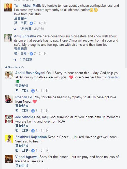 愿一切平安!與13億人民在一起!面對(duì)可怕的地震,各國人民通過網(wǎng)絡(luò)帶來最真誠的同情。